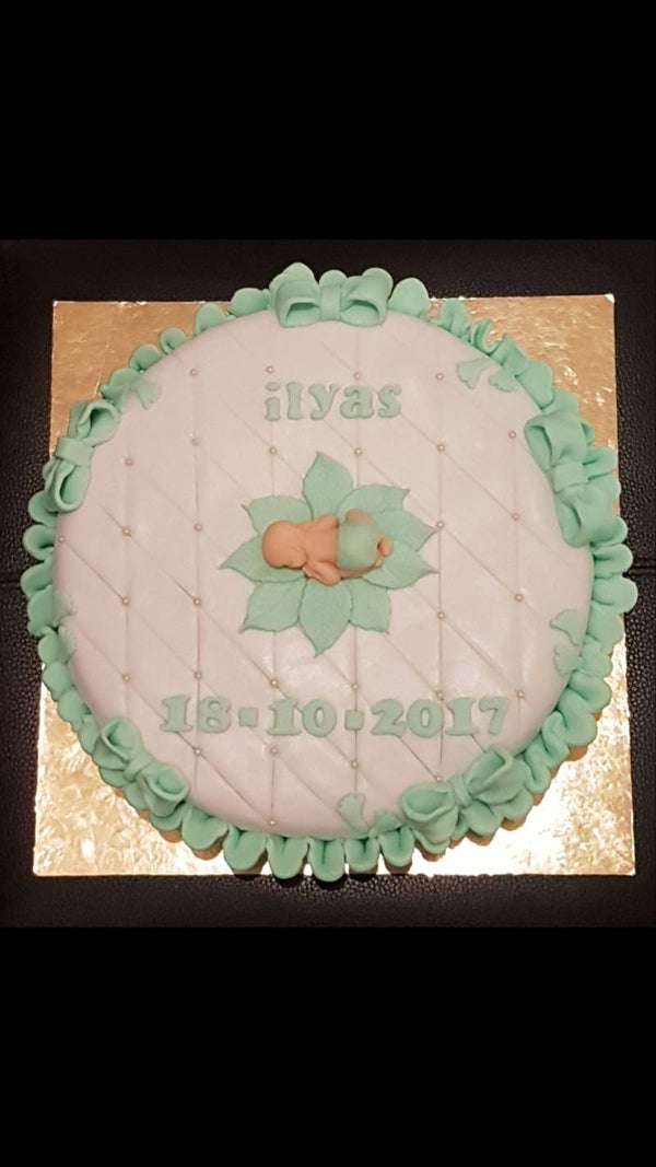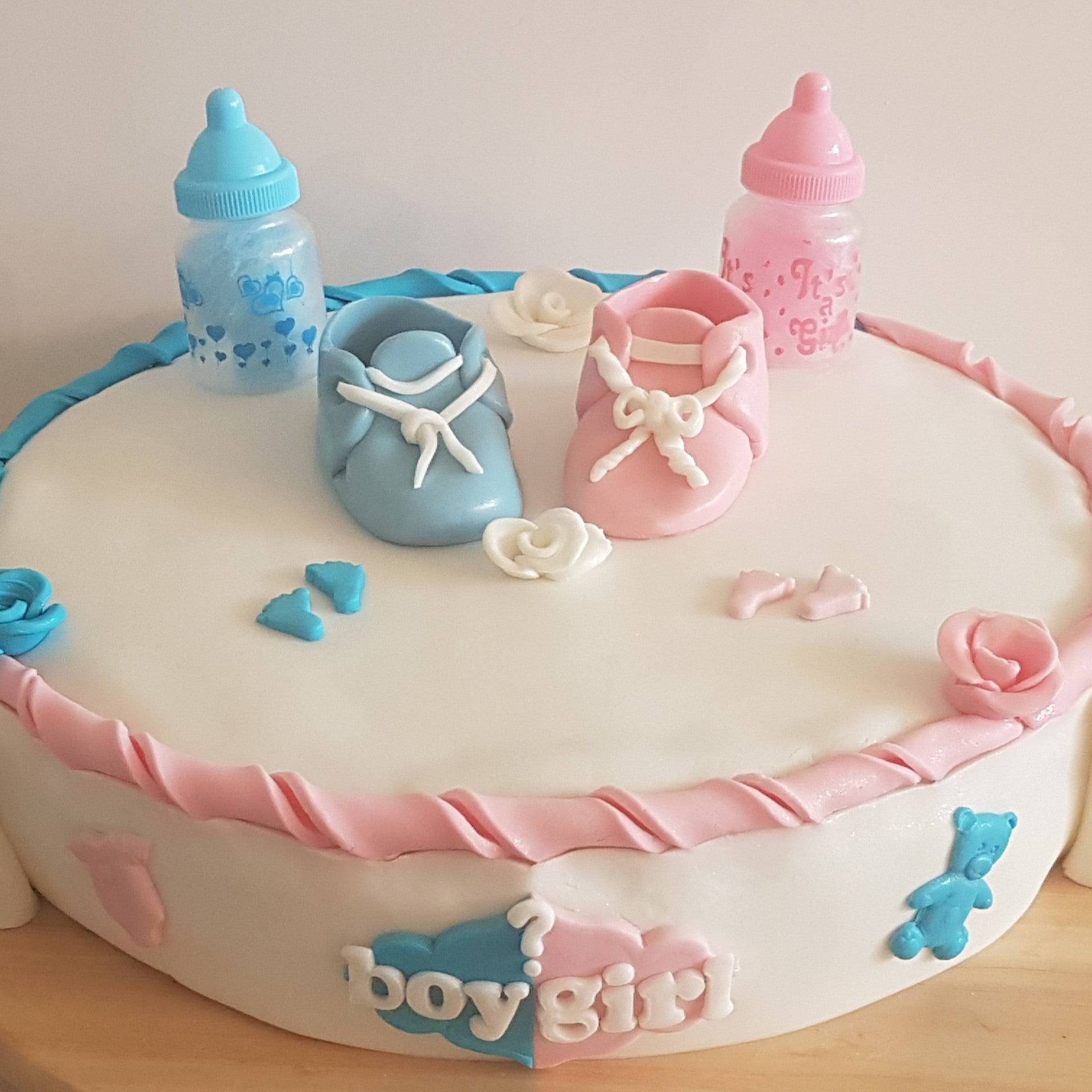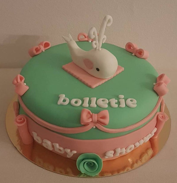 Sierlijke babyshower taarten vanaf 10 personen tot 26 personen in verschillende kleuren en smaken verkrijgbaar.
